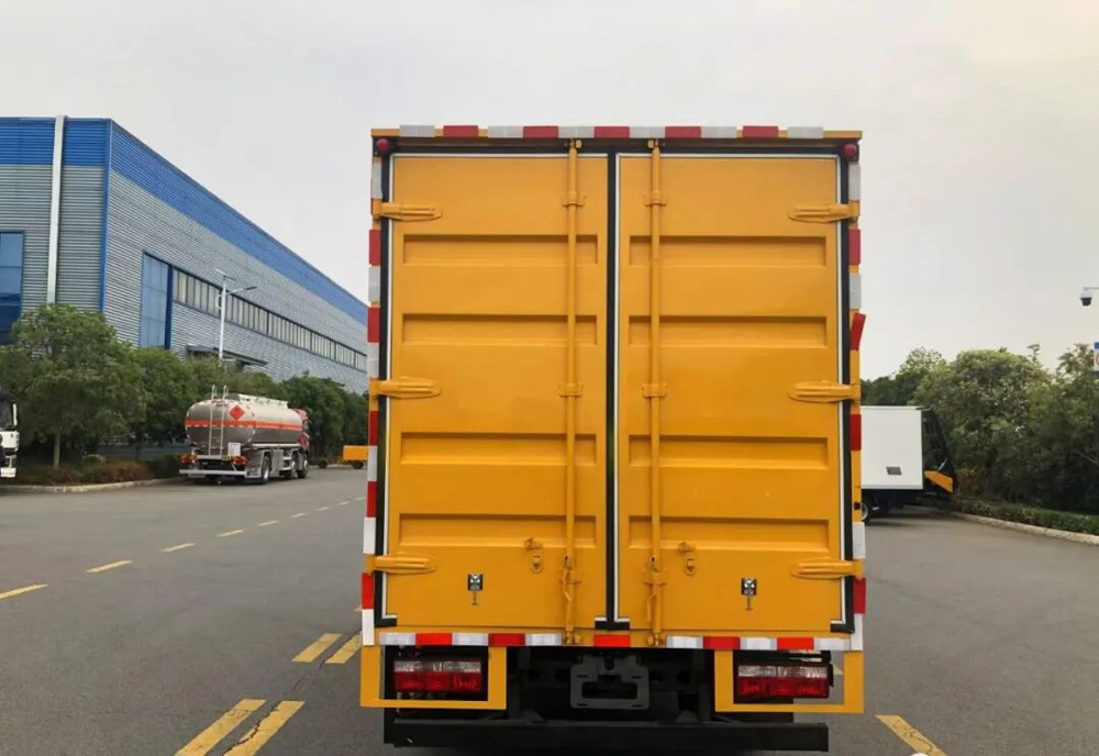 1,僅用軸距3308mm的底盤.車廂頂部封閉,不可開啟.該車專用裝置為廂體、液壓系統,空壓機總成,水泵及使用水泵所必需的油管、